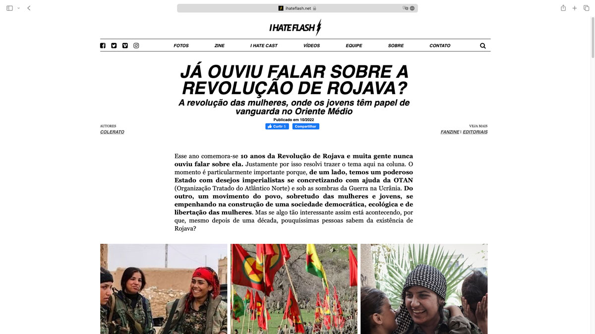 Esse ano comemora-se 10 anos da Revolução de Rojava e muita gente nunca ouviu falar sobre ela. Justamente por isso resolvi trazer o tema aqui na coluna. O momento é particularmente importante porque, de um lado, temos um poderoso Estado com desejos imperialistas se concretizando com ajuda da OTAN (Organização Tratado do Atlântico Norte) e sob as sombras da Guerra na Ucrânia. Do outro, um movimento do povo, sobretudo das mulheres e jovens, se empenhando na construção de uma sociedade democrática, ecológica e de libertação das mulheres. Mas se algo tão interessante assim está acontecendo, por que, mesmo depois de uma década, pouquíssimas pessoas sabem da existência de Rojava?