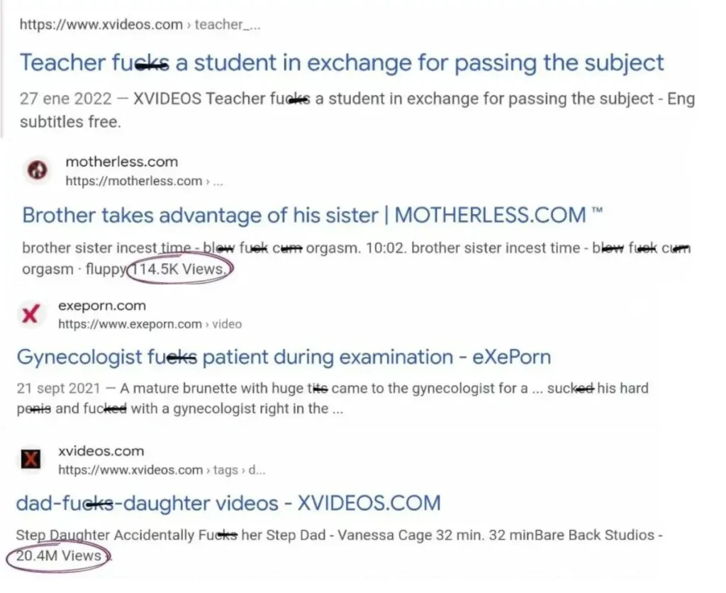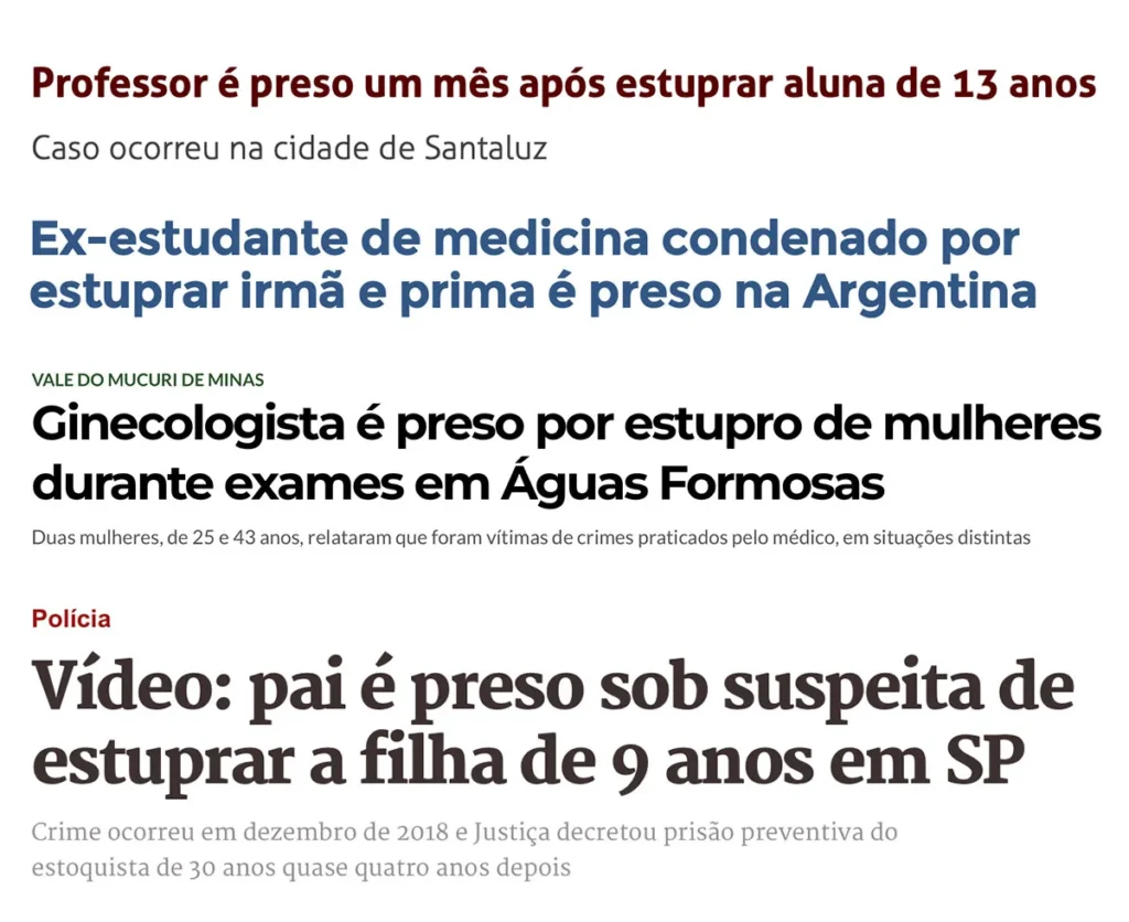 Normalmente, a busca pelas imagens e vídeos acontece por hashtags que indicam o teor do conteúdo. Por exemplo, no Pornhub, é possível pesquisar por “estupro”. Nenhuma mensagem, alerta ou bloqueio impede a busca. Pelo contrário, o Pornhub prontamente sugere outras hashtags como “estupro brasil”, “abusada”, “sexo forcado”, “mulher sendo estuprada”, “estupro novinha”, “estupro coletivo” e por aí vai.